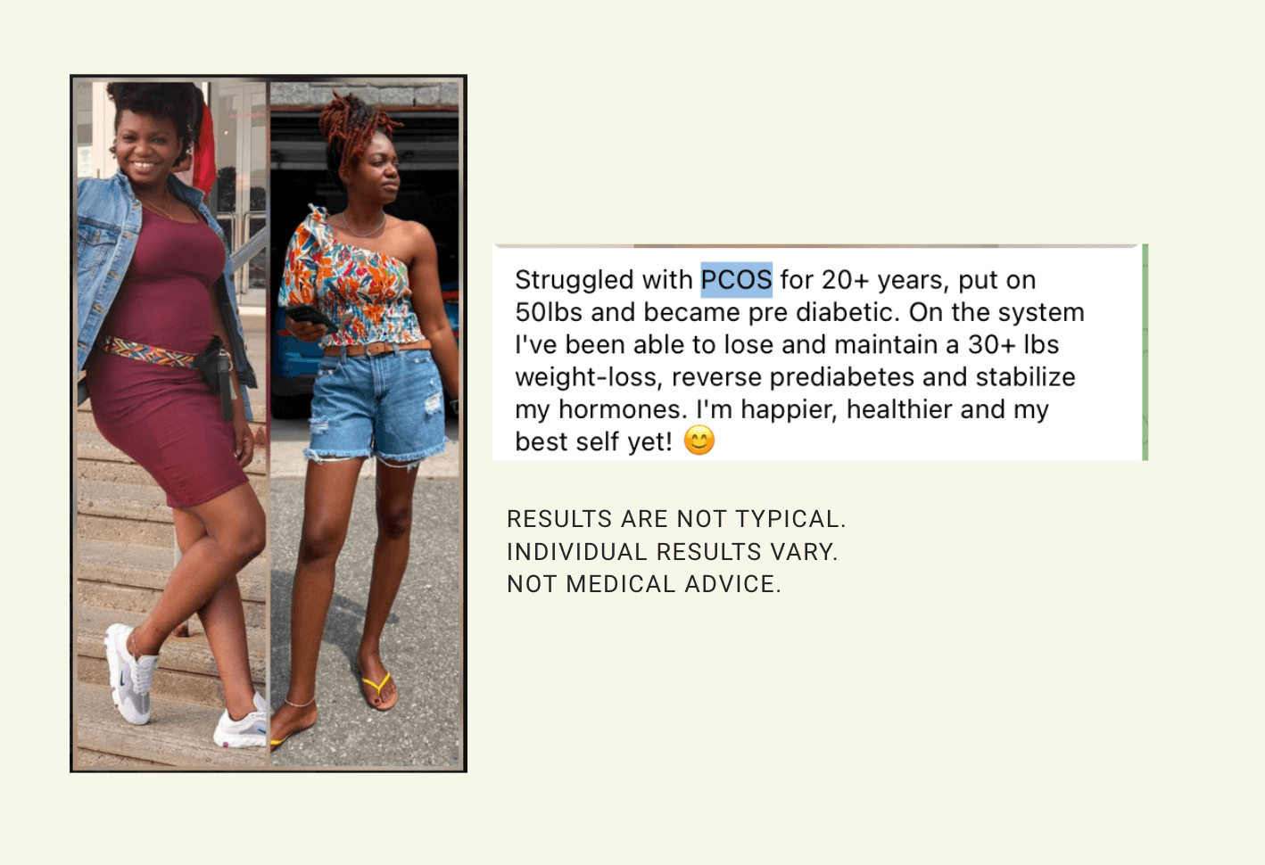 Once I found the right food-based protocol — one that worked with my body — everything changed. The cravings stopped feeling like a character flaw. The energy came back. The weight started moving. My PCOS symptoms, for the first time in years, became manageable.